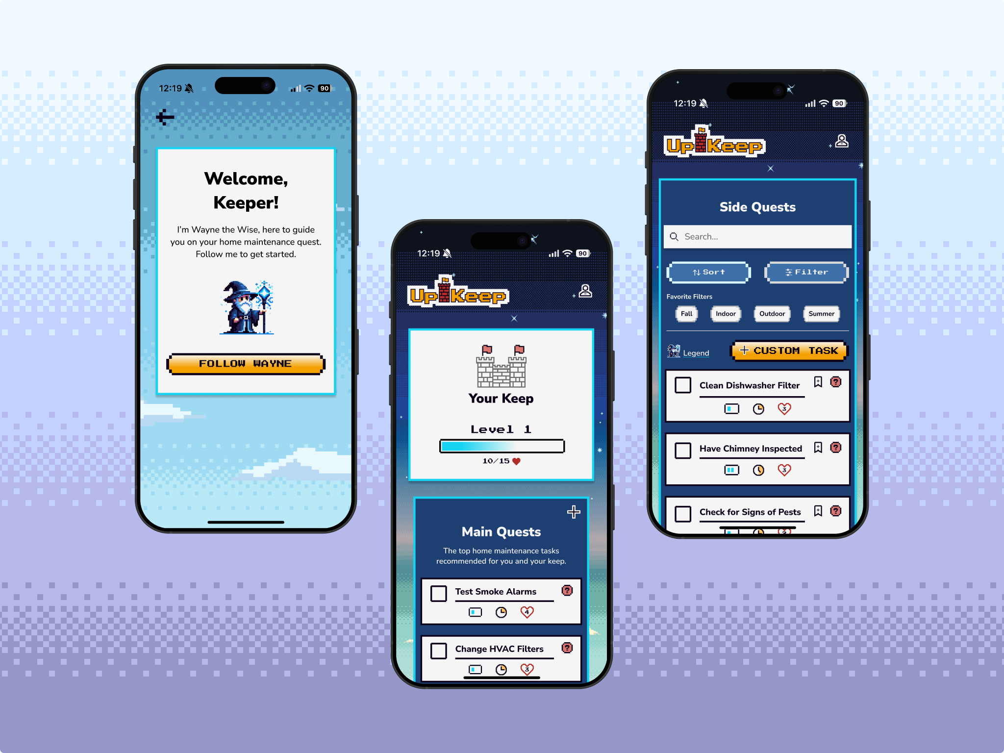 Home maintenance management app designed to give homeowners the confidence to tackle their to-do list with help from retro-themed gamification and a wizard called Wayne.