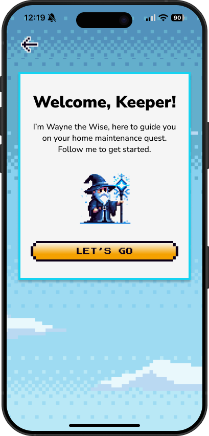 A home maintenance management MVP app design that gives first-time homeowners the tools and confidence to tackle their to-do list with help from retro-themed gamification and a wizard named Wayne