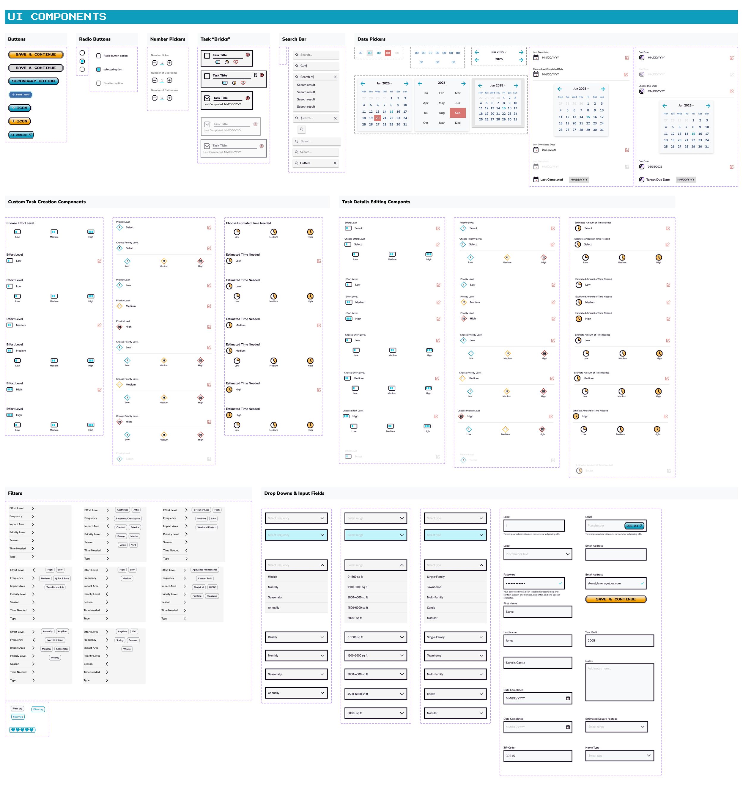 That’s where the 8-bit graphic style and castle theme came in. Inspired by nostalgic tech like Tamagotchis and early video games, this design direction is playful and familiar. And for my target users, (primarily millennials and older Gen Z-ers stepping into homeownership), it taps into childhood memories while reimagining home maintenance as a lighthearted, gamified experience.